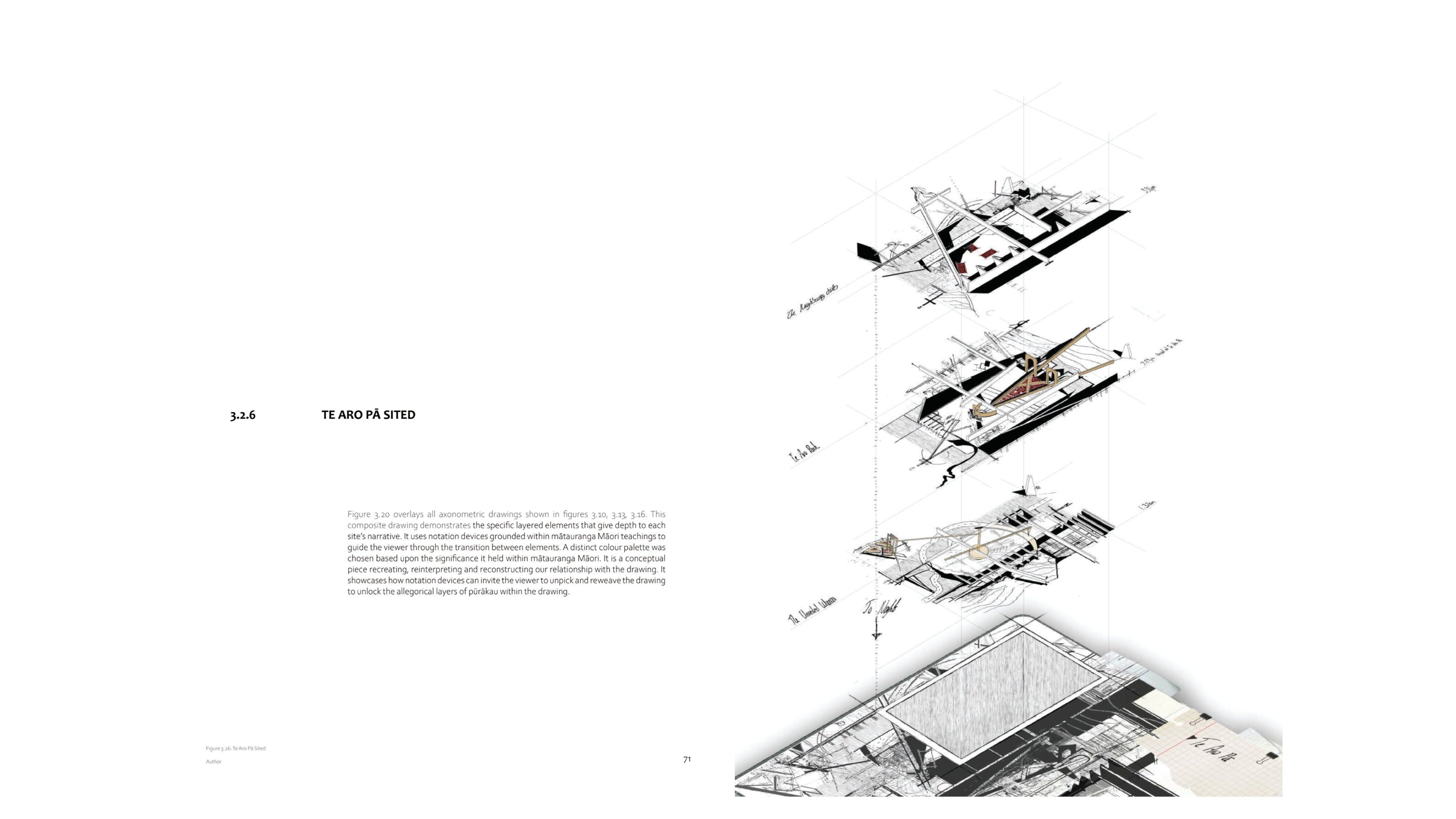 This thesis' research began with two preliminary design sites being explored: urban Te Aro Pā, Wellington and rural Tokomaru Bay, Gisborne — sites representing Māori heritage in direct opposition, reflected in their urban versus rural environments and the inhabitant population. These sites offer critical terrain where inhabiting a mātauranga Māori worldview was explored through the contextual relationships, implied dynamics of cause and effect, and opposing dialogues represented by each site. The developed design site is situated at Ngāpuwaiwaha Marae, Taumarunui, the author’s marae. It is representative of an architectural context defined by the emotional and physical use of the immersive, interactive and habitable characteristics within pūrākau.