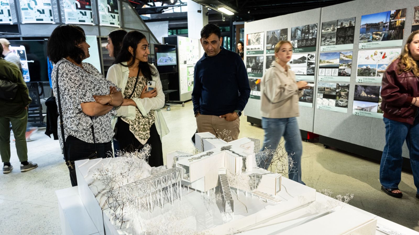 Exhibits from students of the architectural studies, building science and design innovation undergraduate and postgraduate programmes were on display within the atrium. Industry professionals, family, friends, and the public were welcomed to the exhibition through the fortnight showing.